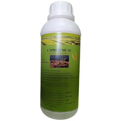 Caprizyme SC, a soil conditioner contains a range of nutrients, including nitrogen, phosphorous and potassium, as well as beneficial microorganisms applied to improve soil properties by making it more crumbly friable and control soil erosion, maintaining the integrity of soil macropores, reducing surface sealing and crusting, reduce turbidity in runoff water and promoting flocculation of suspended sediment with higher environmental benefits.