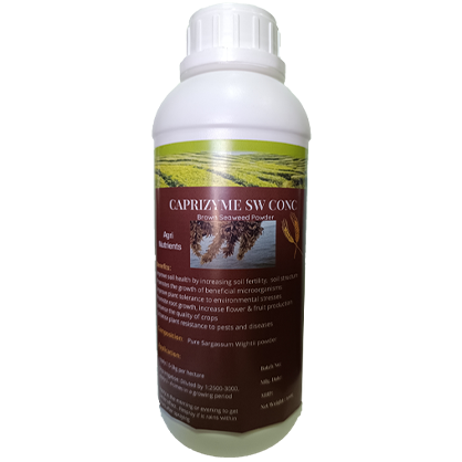Caprizyme SW contains high levels of nutrients and minerals such as nitrogen, phosphorus, potassium, calcium, magnesium, & iron The large amounts of insoluble carbohydrates in marine algae act as a soil conditioner(improve aeration and soil structure, especially in clay soils) & has good moisture retention properties.